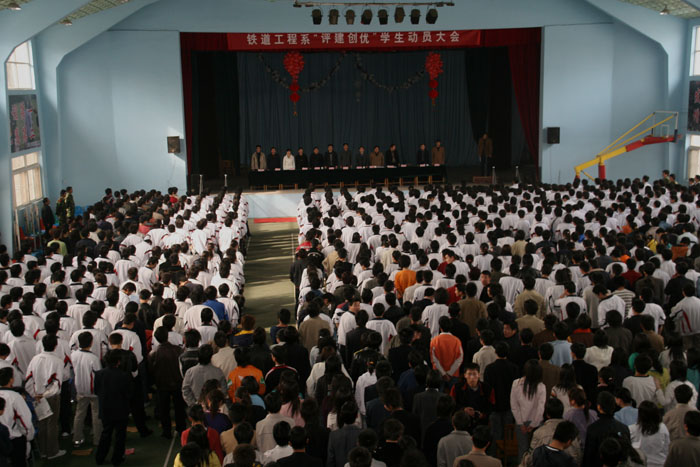 3月26日下午,铁道工程系在院文体中心隆重举行“评建创优”学生动员大会。学院党委书记崔岩、党委副书记纪委书记孟广胜、副院长车绪武和杨云峰以及学生处有关领导出席大会,会议由系主任孙立功同志主持,铁工系全体学管人员、在校1500多名学生参加了本次大会。