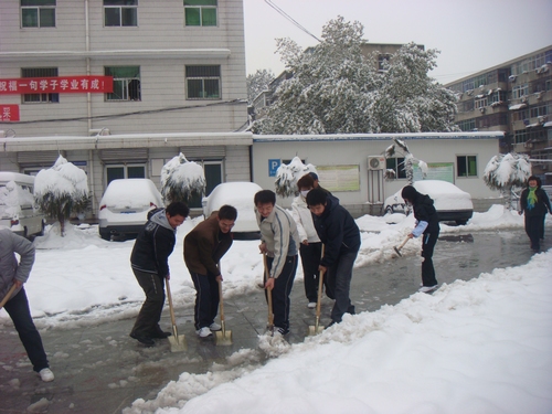 11月11日,全国大部分地区迎来了入冬以来的第一场大雪,风雪肆虐了一天,积雪厚度达到20㎝左右。整个校园一片银装素裹,但厚厚的积雪也给师生们的出行带来了不便。为了防止天气转晴、积雪消融结冰带来的行走不便的问题,我系广大师生自愿积极行动起来,在校园内展开了义务扫雪活动。顶着凛冽的寒风,广大师生们干的是热火朝天。经过大家的共同努力,校园内通行路面的积雪基本上被清理干净,有力地保障了师生出行的安全。(供稿:李强 摄影:宋勇 编辑:张团结)