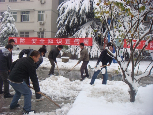 11月11日,全国大部分地区迎来了入冬以来的第一场大雪,风雪肆虐了一天,积雪厚度达到20㎝左右。整个校园一片银装素裹,但厚厚的积雪也给师生们的出行带来了不便。为了防止天气转晴、积雪消融结冰带来的行走不便的问题,我系广大师生自愿积极行动起来,在校园内展开了义务扫雪活动。顶着凛冽的寒风,广大师生们干的是热火朝天。经过大家的共同努力,校园内通行路面的积雪基本上被清理干净,有力地保障了师生出行的安全。(供稿:李强 摄影:宋勇 编辑:张团结)