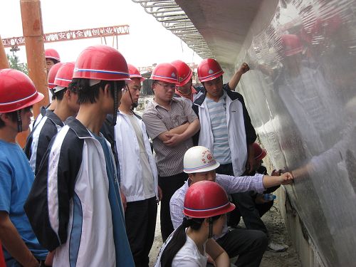 为了加强学生对建筑力学知识的认识与了解,提高学生理论与实际相结合的能力,扩大视野,并通过亲身体验从思想意识上认识工程,从而树立正确的学习态度,确定自己的人生目标。5月10日早晨,70多名我系学生在力学教研室老师及力学学社成员的带领下前往西潼高速改扩建施工现场认识参观。