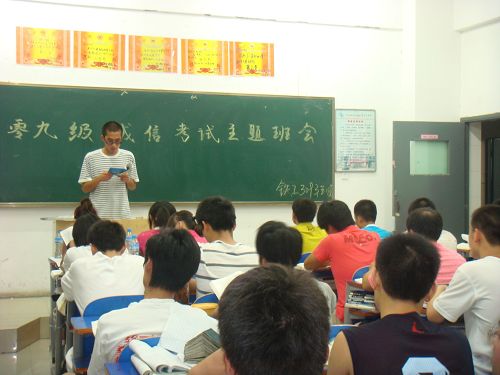 为了增强学生诚信考试意识,创建优良学风,进一步推动两个文明工程建设,7月5日晚,我系09级各班开展了“文明考风,诚信考试”主题教育活动,各班班主任、学生干部就诚信考试分别做了承诺发言。这次活动意在要求学生在即将到来的的期末考试中杜绝作弊行为,共建“公平、公正、公开”的考场环境,树立大学生良好诚信形象,同时,让同学们进一步端正学习态度,严肃考风考纪,刻苦学习钻研,顺利完成学业。(供稿:宋勇 摄影:韩二飞)
