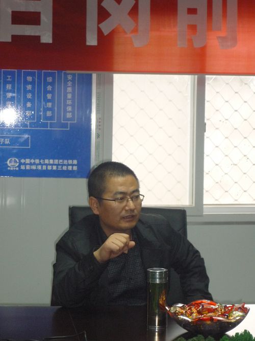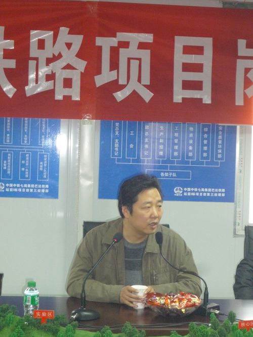 中铁七局三公司巴达铁路指挥长于辉在挂牌仪式上讲话