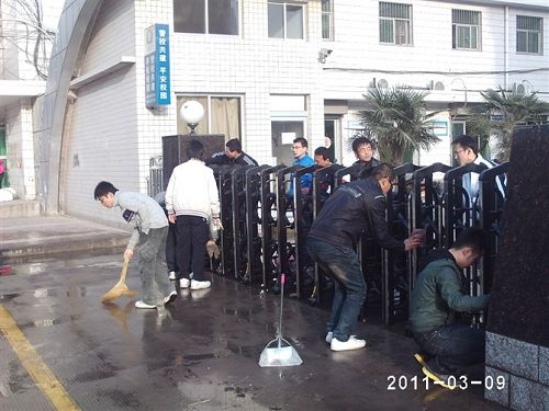 擦洗学院大门