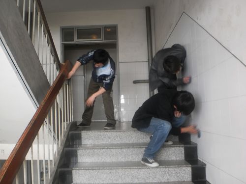 清洗楼梯墙壁