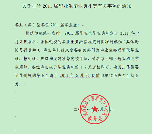 关于举行2011届毕业生毕业典礼等有关事项的通知