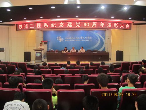 6月23日下午,铁道工程系在学术报告厅召开铁工系纪念建党90周年暨2010—2011年度第二e濳学期党建进公寓先进个人表彰大会,系领导、辅导员、班主任和400多名学生党员、入党积极分子参加了大会。会议宣读了铁工系党建进公寓先进个人表彰决定,并给一号、四号、六号学生公寓30名党建进公寓先进个人颁发了荣誉证书。会议号召全系学生以获奖同学为榜样,为打造文明公寓而努力,为构建和谐公寓做出贡献。(供稿侯峰,编辑张团结)