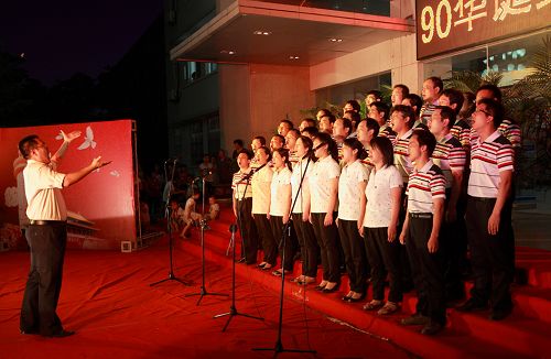 铁工系教师在排练红歌