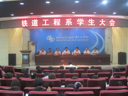 6月29日,铁道工程系在学术报告厅召开2010级两年制学生大会,院长王长友、副院长王闯出席大会,教务处、学生处及相关部门负责人及300余名学生参加了大会。会上,院长王长友就我国目前铁路建设大发展的有利形势及窦铁成等我院的一批优秀毕业生的先进事迹,勉励同学们对自己要充满信心、自强不息,学会善于与他人交流,不断提高自身的再学习能力。王长友院长语重心长的话语感染了每一位同学,他们将将继续刻苦学习,为今后的成长成才努力奋斗,绝不辜负学院的期望。(张团结供稿)