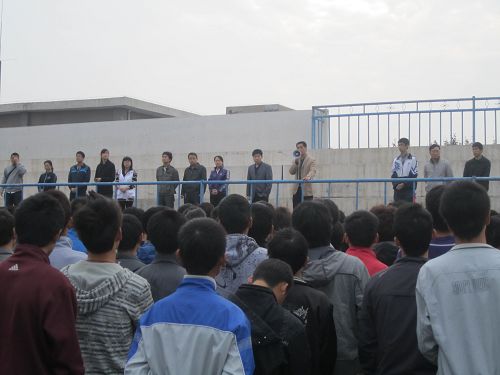 今天早晨,我系领导利用早操的机会与2011级新生在操场召开见面会,参加见面会的领导及老师有:系书记亢新河;系主任张碧;系办公室主任张团结;系办公室副主任任庆国;高铁教研室主任方筠;辅导员侯峰、刘蜀君、张鹏飞、黄显鸽、常吉华、王盼等;学生党支部书记宋勇、郎儒林、詹祥元,会议由亢书记主持。