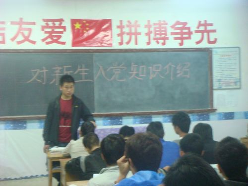 1016晚自习,我系组织7名综合素质高的学生党员给1114个班的大一新生进行入党启蒙教育,内容有党员应具备的基本条件以及“怎样写入党申请书”、“如何端正入党动机”等党的基本知识,同时,还向他们具体介绍了入党程序、铁工系党总支、学生党支部的基本情况等。增强了新生对党的理论基础知识的了解,加深了学生党员与群众的联系,又提高了新生向党组织靠拢的政治热情。