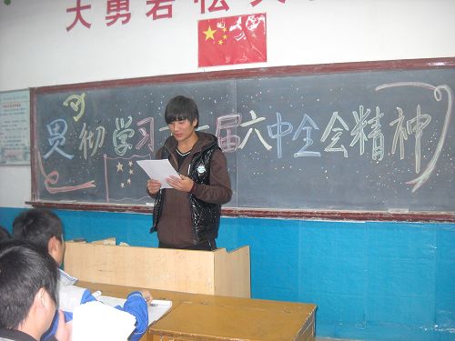 为了学习贯彻十七届六中全会精神、进一步营造班级良好的文化氛围,我系各班级近日在本班教室,召开了关于学习贯彻十七届六中全会精神的主题班会。