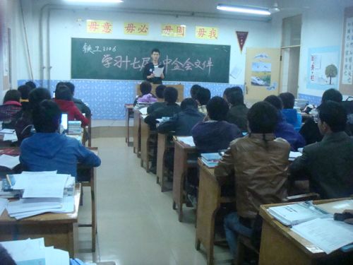 各班级通过班主任、班干部宣读十七届六中全会的核心思想、组织同学们自学十七届六中全会学习资料、播放会议视频等方式学习会议精神,会上,很多班级的同学们围绕“如何建设先进班级文化”、“如何做一个有文化的大学生”等问题进行了激烈的讨论,加深了对十七届六中全会精神的理解。