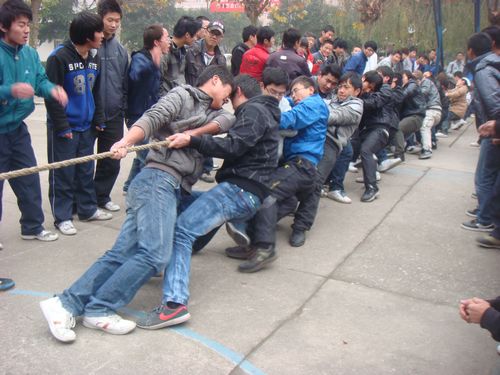 为增强11级新生各班凝聚力,增强新生体质锻炼,近日,我系举行了新生班级拔河比赛。十几场的比赛,场场扣人心弦,双方队员都紧紧抓牢手中的绳子,下腰勒绳,重心降低,齐心协力,围得水泄不通的“啦啦队”也都在场有节奏的呐喊助威,选手们使尽全力,奋勇拼搏,各班都表现出积极高涨的参与热情。在决赛中,高铁3111班的选手们团结一致表现出非凡的实力,获得了冠军。