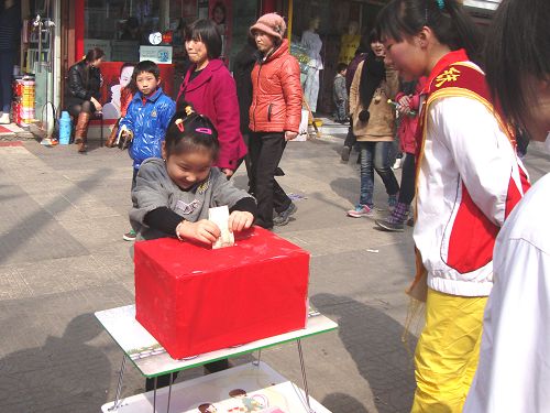 可爱的小朋友也来捐款,这已经是她捐的第三次了
