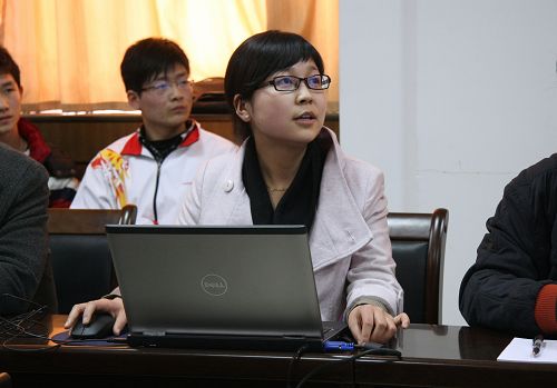 黄显鸽老师向大会介绍王鹏同学的感人事迹