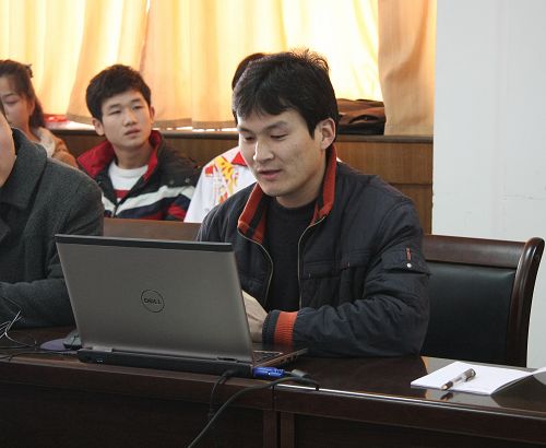 黄显鸽老师向大会介绍王鹏同学的感人事迹