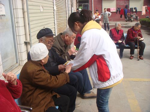 学生们的到来受到老人们的鼓掌欢迎。在简单的任务安排后,大家积极的行动起来,有的打扫房间,有的擦玻璃、扫地,有的帮老人洗洗刷刷。等一切打扫完比之后,同学们为老人献上精心准备的娱乐节目。激情高涨的老人们也加入到表演当中,张奶奶为同学们表现模仿秀,还有个爷爷给大家唱上一段小曲,使现场的表演推向高潮。