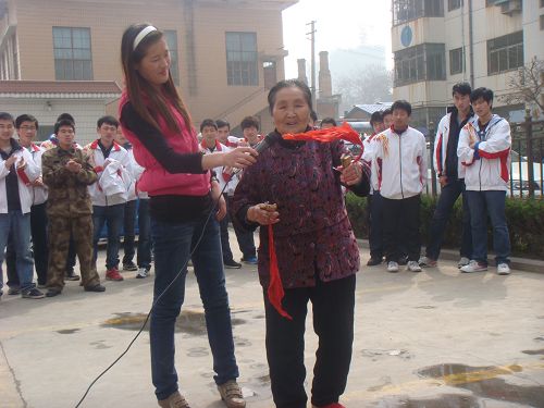 学生们的到来受到老人们的鼓掌欢迎。在简单的任务安排后,大家积极的行动起来,有的打扫房间,有的擦玻璃、扫地,有的帮老人洗洗刷刷。等一切打扫完比之后,同学们为老人献上精心准备的娱乐节目。激情高涨的老人们也加入到表演当中,张奶奶为同学们表现模仿秀,还有个爷爷给大家唱上一段小曲,使现场的表演推向高潮。