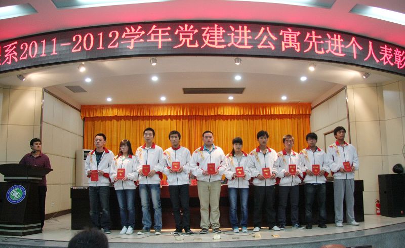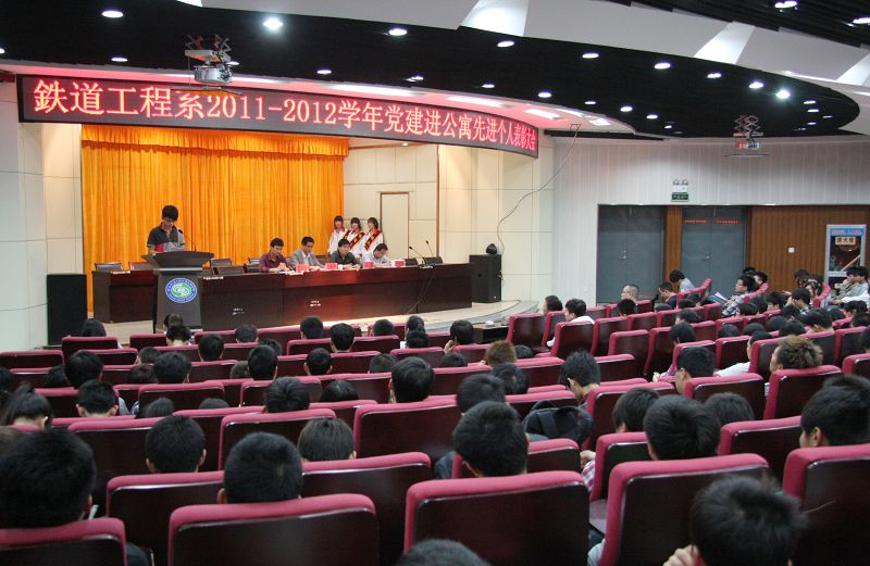 2012年5月23日晚,我系在学院学术报告厅举行铁道工程系2011-2012学年党建进公寓先进个人表彰大会,我系党总支书记亢新河、系主任张碧、办公室主任张团结、全体辅导员、学生党员及入党积极分子等400多名学生干部参加了大会,本次大会由系办公室副主任任庆国主持。