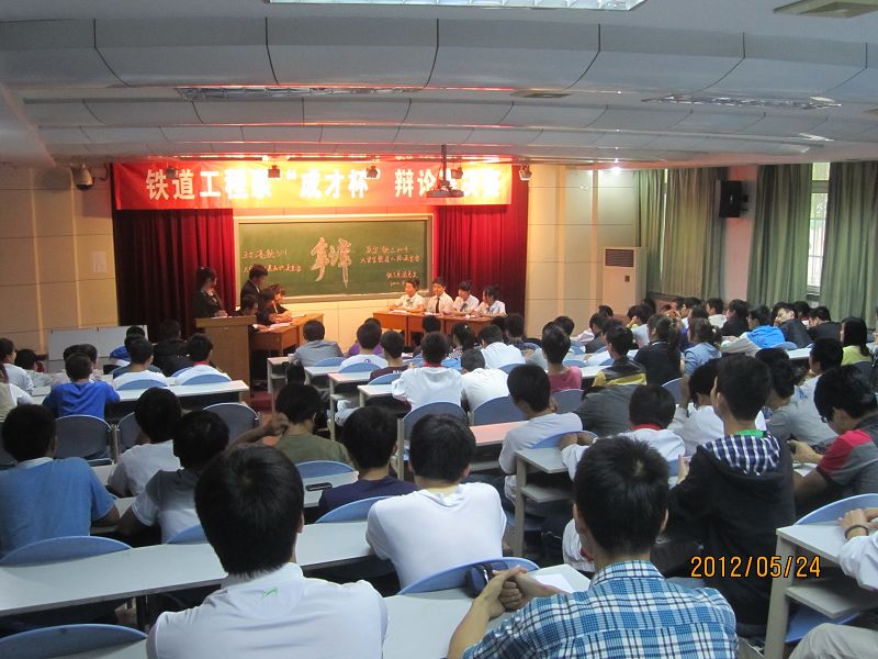 群雄舌战展雄风,争锋相对辩天下,5月24日中午,铁道工程系在B100举行辩论赛总决赛。铁道工程系办公室副主任任庆国、团总支书记宋勇、11级辅导员侯峰、学生会主席于志富、副主席朱弘扬担任本次大赛的评委。本次辩论赛的辩题是“大学生积累知识和塑造人格哪个更重要”,正方为一路过关斩将的高铁3111班代表队,反方为一路高歌猛进的铁工2114班代表队。辩论赛共分为开篇立论、一对一攻辩、攻辩小结、自由辩论、总结陈词、观众提问等六个环节。