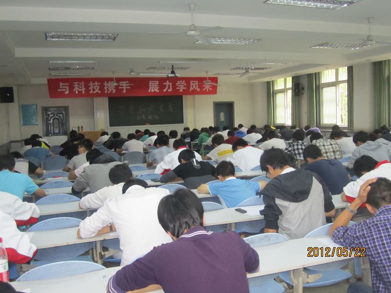 为培养同学们对力学知识的学习兴趣,激发大家的学习热情,让更多的同学了解力学知识,感受力学的魅力。5月22日,铁道工程系团总支在B200、B300举行第五届力学知识竞赛初赛。此次竞赛由结构教研室的老师负责,面向2011级新生开展,初赛试题采用笔答形式,从中选取对力学知识掌握牢固的同学参加下一轮的实作竞赛。(郭静供稿,任庆国编辑)