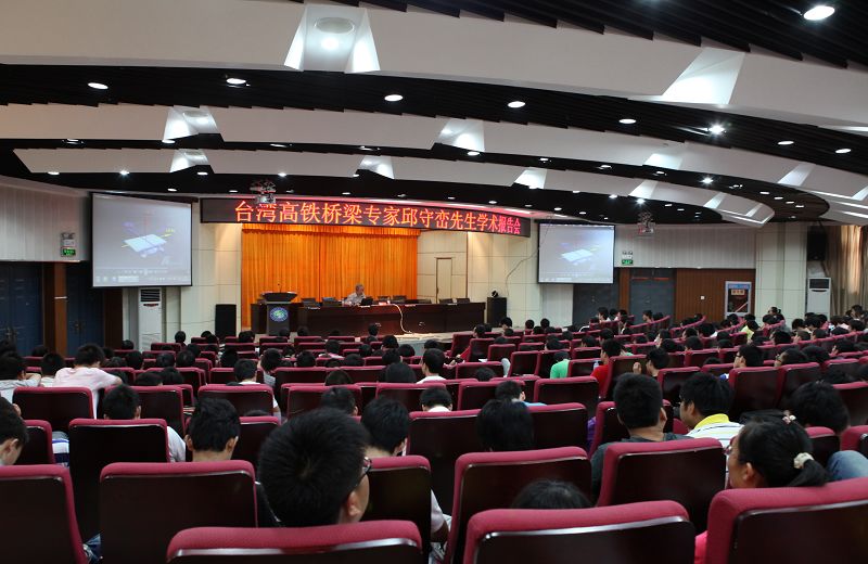 邱先生分别于7月2日下午、7月3日上午在学院学术报告厅为铁道工程系铁道工程技术、高速铁道技术及相关专业师生作了“金门大桥技术方案介绍”、“全套管桩基施工技术”、“高速铁路桥梁施工优化”等精彩内容。