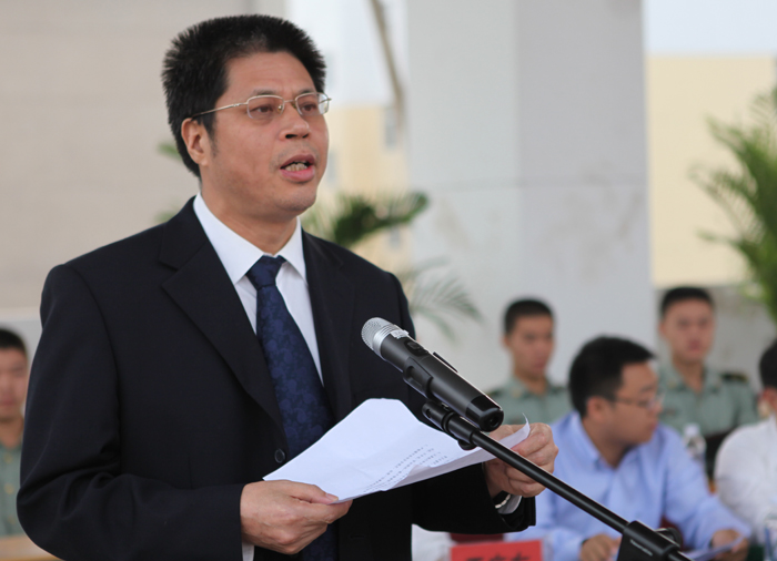 院团委书记宣读了《优秀教官优秀连队评选办法》,学生处副处长宣布了军训团的建制。新生代表也在会上也作了发言。