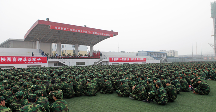 9月24日上午,学院在运动场隆重举行了2012级新生开学典礼暨军训开营仪式。党委书记王晖,党委副书记车绪武,党委副书记、纪委书记杨云峰,副院长王闯、焦胜军、李林军以及学院有关部门负责人和中国人民解放军63785部队27名教官出席了典礼仪式,学院3750余名新生参加了开学典礼(其中,铁道工程系共有715名新生参加了开学典礼),典礼由学生处处长王庆东主持。