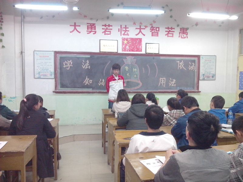 最后,各班级班主任作了总结,希望同学们知法、懂法、守法、加强自身修养,增强法律意识、树立正确的人生观、价值观,注重自身心理调节;同学之间和睦相处、相互理解尊重,热爱生活,做一个健康、阳光的大学生。同学们也纷纷表示,此次班会进一步提高了自己辨别真伪、善恶、美丑的能力,极大地增强了他们的道德观念和法律意识,在今后的学习生活中,带头遵纪守法,宣传法律常识,弘扬法制精神。