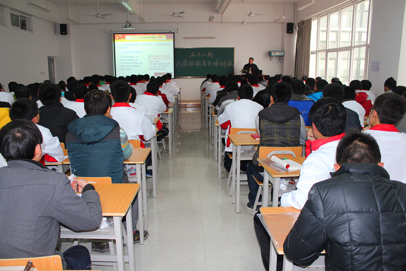 12月11日、12日下午,2012年下半年入党积极分子四十八期、五十三期党课培训班分别在学术报告厅和高新校区GB364教室开班。党委书记、党校校长王晖分别为两次培训班上了题为《解读十八大精神》的第一堂课,铁工系、道桥系培训班学员共计百余人聆听了本次党课。铁工系党总支书记亢新河主持讲座。
