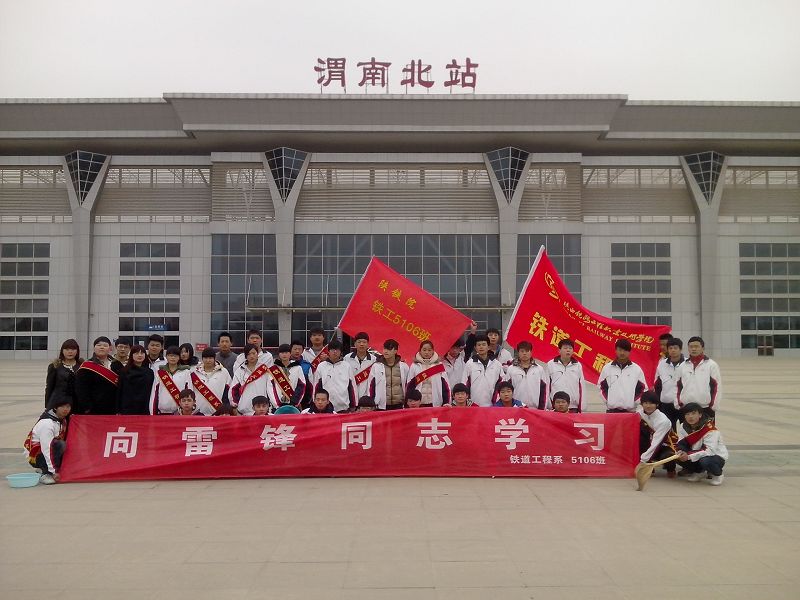 3月2日,由铁道工程系高新校区学生会、临渭校区五年制11级、12级各班同学代表等50名同学和铁工5106班全体学生组成的两支志愿者队伍分别在渭南火车站和渭南北站开展学雷锋活动,铁道工程系辅导员万仁远老师和杨媛老师分别带队开展活动。
