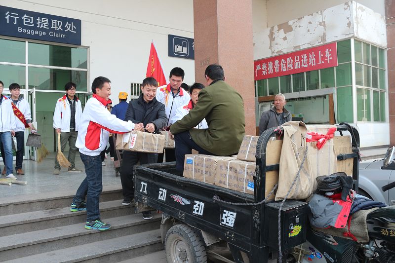 第一支志愿者队伍早早地在校门前集合,因为路途较远,杨老师带领学生乘公交车到达渭南北站,到达目的地后,学生对高铁站广场,卫生间等进行了打扫,学生们还主动帮旅客提行李,以自己的实际行动弘扬雷锋精神,得到了车站工作人员和旅客们的好评。