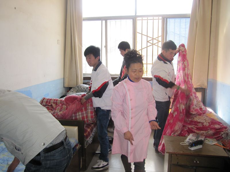 杨老师和同学们首先给老人们送去了营养品,然后,同学们自发行动起来,帮老人捶背,为老人削苹果、剥香蕉,帮老人打扫房间、擦洗窗台玻璃、清洗楼道;最后,同学们给老人们献上了他们精心准备的文艺节目,在同学们的感染下,老人也扭起了秧歌,露出了慈祥的笑容,顿时,敬老院里暖意浓浓。