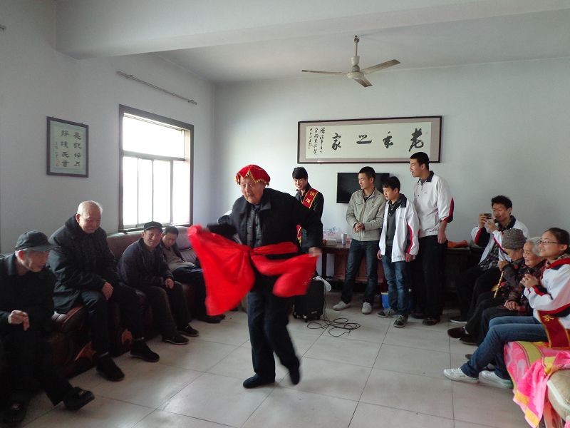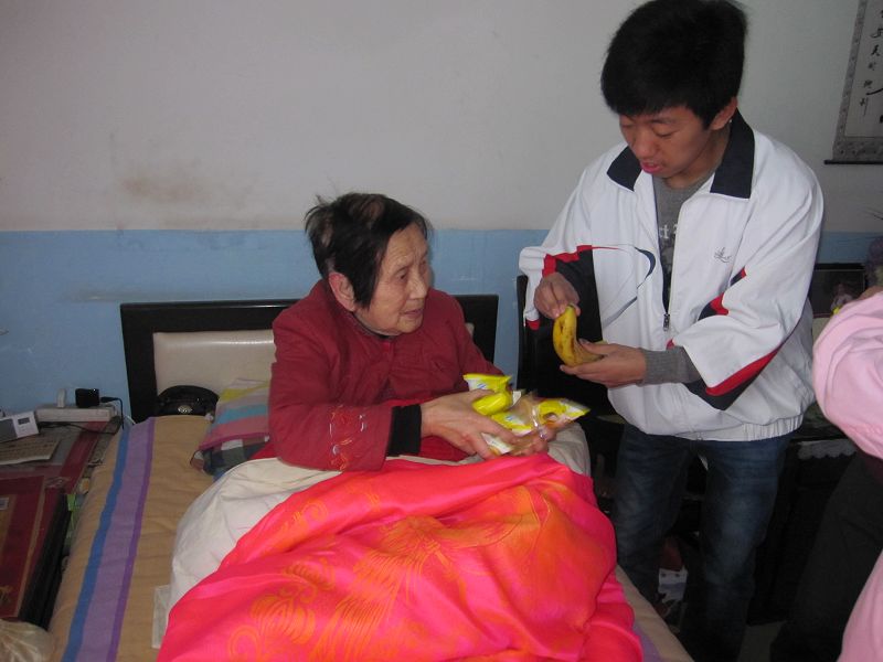 杨老师和同学们首先给老人们送去了营养品,然后,同学们自发行动起来,帮老人捶背,为老人削苹果、剥香蕉,帮老人打扫房间、擦洗窗台玻璃、清洗楼道;最后,同学们给老人们献上了他们精心准备的文艺节目,在同学们的感染下,老人也扭起了秧歌,露出了慈祥的笑容,顿时,敬老院里暖意浓浓。