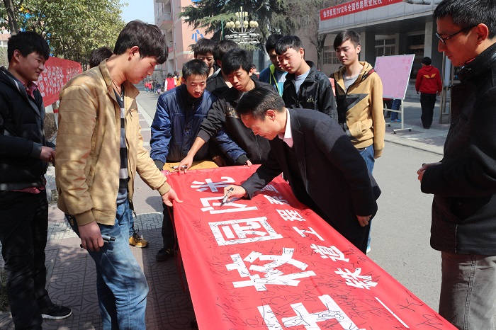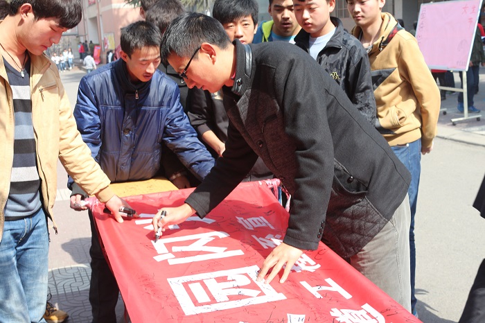 活动过程中,广大师生踊跃参与,在长长的宣传横幅上郑重的签下自己的姓名。学院党委书记王晖、党委副书记车绪武、组织部部长蒋平江也莅临活动现场,积极响应学雷锋签名活动,将现场气氛推到了高潮。
