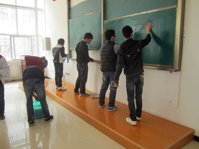 2013年3月13日下午,铁道工程系铁工3122、铁工3124、铁工3125、铁工3126四个班级100多名贫困补助生开展了“传承雷锋精神,创建环保校园”——大扫除活动,主要清除高新校区教学楼B栋一层阶梯教室卫生,让全校师生能有一个良好的上课环境。参与活动的学生积极热情、任劳任怨,用行动践行了雷锋精神。