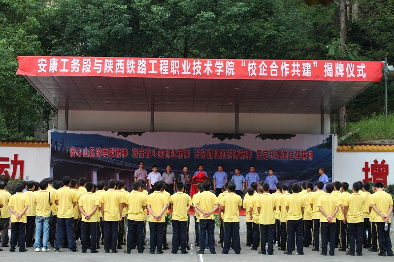 2012年8月22日,陕铁院党委副书记车绪武、学工部(学生处)及铁道工程系负责人一行5人赴安康工务段巴山工务车间,出席陕铁院与安康工务段共建“实习实训、素质教育基地”合作协议签字与揭牌仪式。安康工务段段长刘惠军、党委书记彭有辉等领导及学院30余名毕业生参加了仪式。