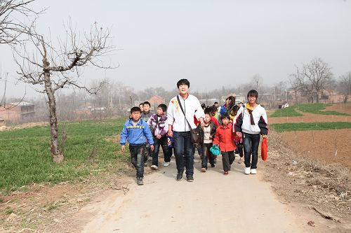 3月18日上午,我系高铁3113班的8名学生代表在系党总支书记亢新河的带领下,来到临渭区桥南镇“留守儿童之家”,看望在那里生活和学习的留守儿童们,并送去了社会各界爱心人士的爱心捐款2917.1元。随后,学生们还带领着45名留守儿童郊游,一起做游戏,陪着小朋友度过了一个欢快的星期天。