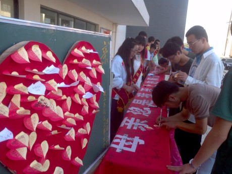 在临渭校区,各班级也组织召开了感恩母亲节主题班会,通过班会活动宣传母恩的伟大。学生会也开展了感恩母亲节签名活动。