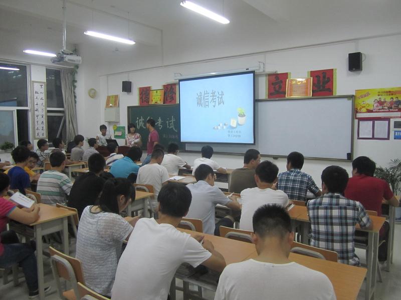 6月17日晚,铁工系高新校区各班召开诚信考试主题班会,同学们在认真学习了《诚信考试承诺书》之后,郑重地在上面签上了自己的名字。这是铁工系在学生考试之前坚持开展的一项常规活动,以此教育引导每位学生从自身做起,自觉遵守考风考纪,营造诚实守信的考试环境,维护考试的公平、公正,不断加强学风建设。