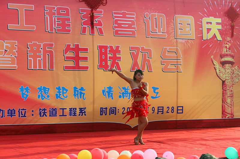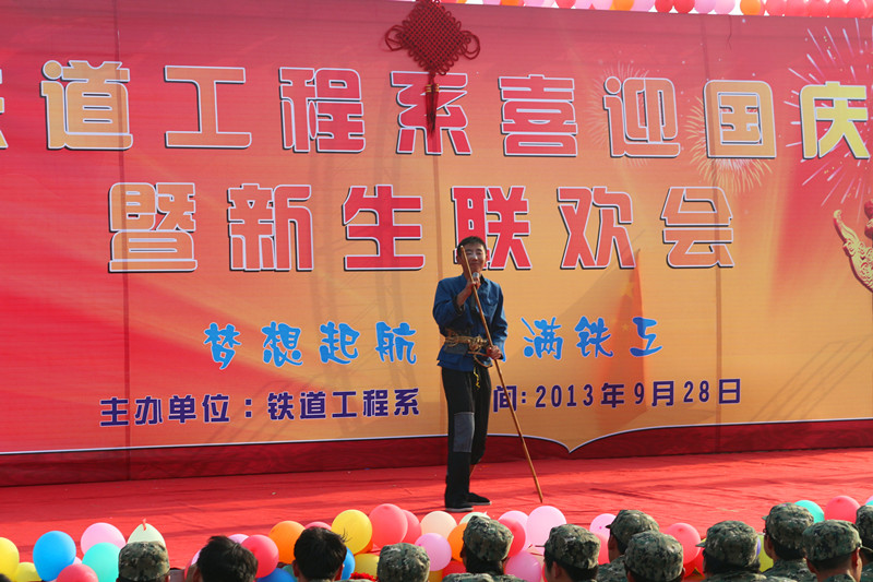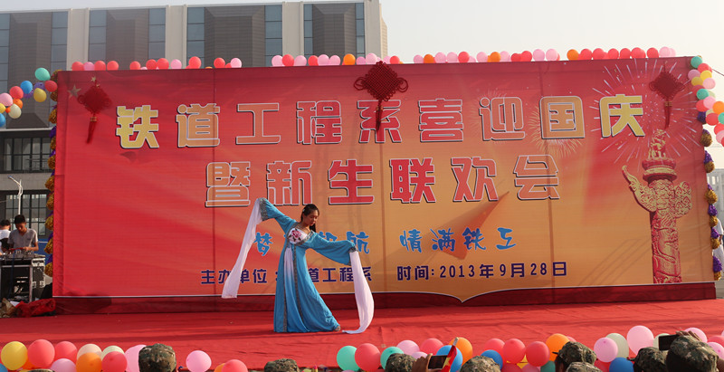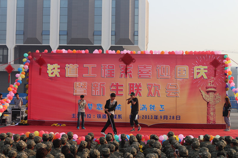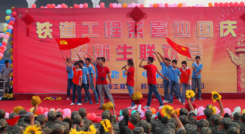 金秋九月,秋风送爽。9月28日下午,高新校区羽毛球场歌舞欢畅,人声鼎沸,以“梦想起航,情满铁工”为主题的铁道工程系喜迎国庆暨新生联欢会在这里热情上演。各职能部门、有关领导人和2013级新生参训部队教官、1500余名新生一同观看了联欢会。