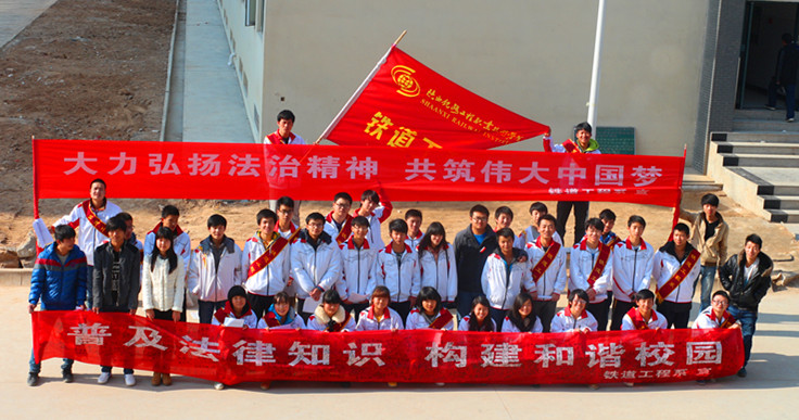 为进一步开展以宪法为核心的法制宣传教育活动,在全社会树立宪法权威,弘扬社会主义法治精神,形成守法光荣的社会氛围,为实现“两个一百年”奋斗目标和中华民族伟大复兴的中国梦营造良好社会环境。12月4日,铁道工程系组织开展以“普及法律知识,构建和谐校园”、“大力弘扬法治精神,共筑伟大中国梦”为主题的校内普法宣传活动。
