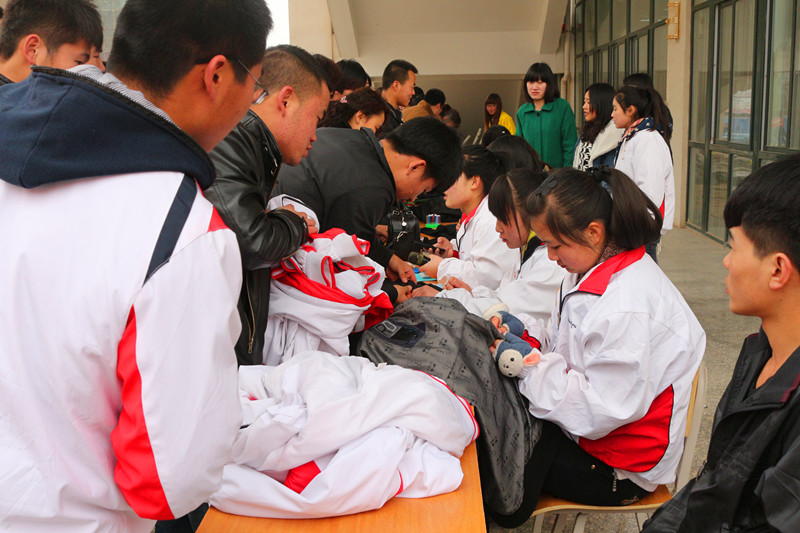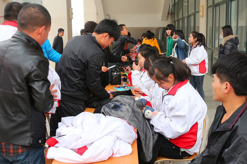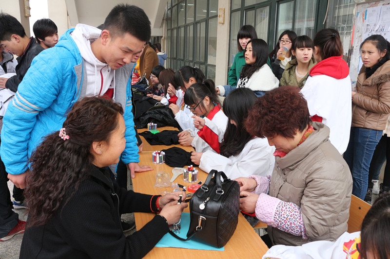 3月5日上午,铁工系40余名女生在高新校区餐厅门前举行“穿针引线,情意无限” 义务缝补活动。