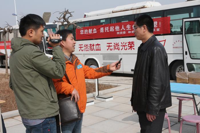献血学生代表接受媒体采访