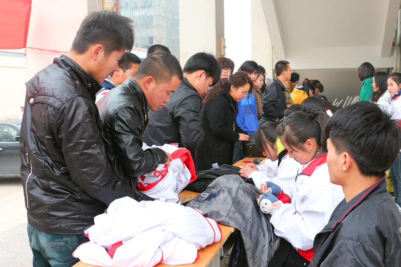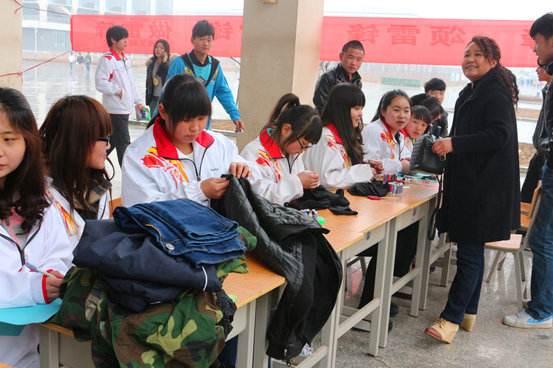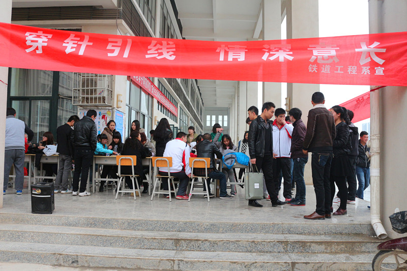 3月5日上午,铁工系40余名女生在高新校区餐厅门前举行“穿针引线,情意无限” 义务缝补活动。