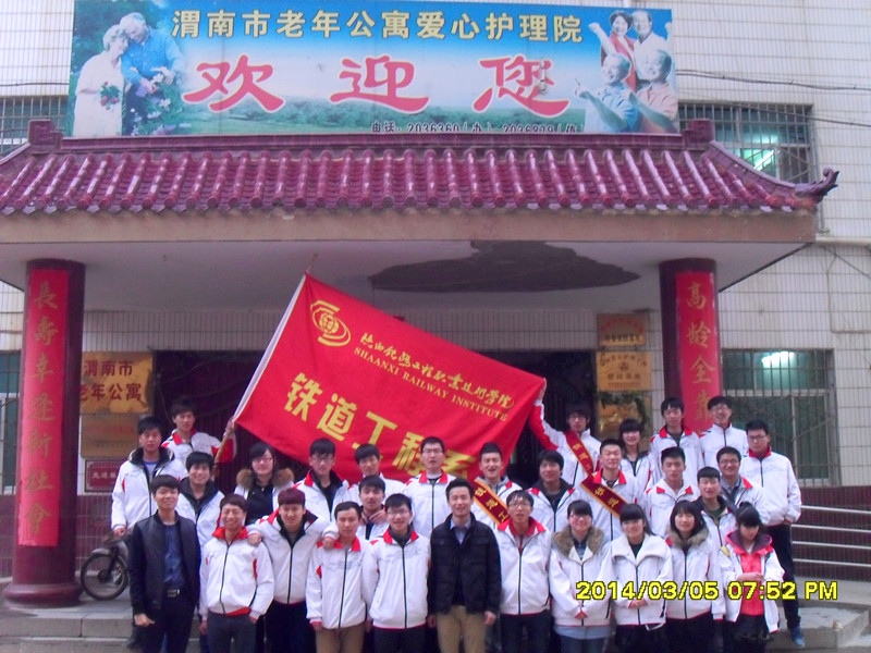 3月5日下午,铁道工程系学雷锋小组冒着小雨一行前往渭南市社会福利院看望孤寡老人,同老人一起唱歌,聊家常,并帮老人梳头剪指甲,传递爱的正能量。