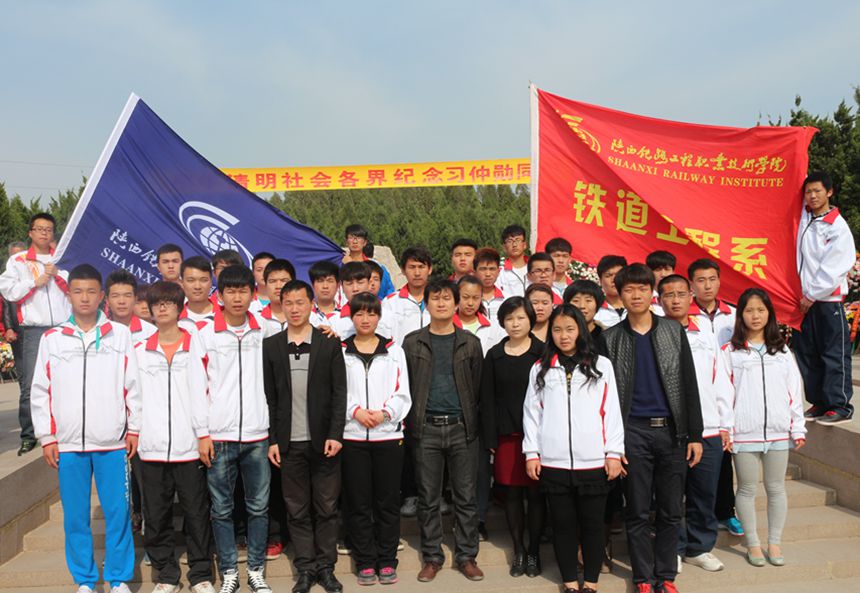 2014年4月5日清明节,院团委、铁道工程系、思政部共计39名师生党员、积极分子在习仲勋陵园举行 “继承革命传统,弘扬爱国精神”清明祭扫暨爱国主义教育活动。 习仲勋同志雕像前,2名学生党员代表献上了花篮,全体师生怀着对习仲勋同志无比崇敬之情三鞠躬。随后,思政部教师杨丽娜围绕习仲勋同志“战斗一生,快乐一生;天天奋斗,天天快乐”的革命乐观主义精神进行了现场教学,使参加活动的全体师生深受启发和感动。