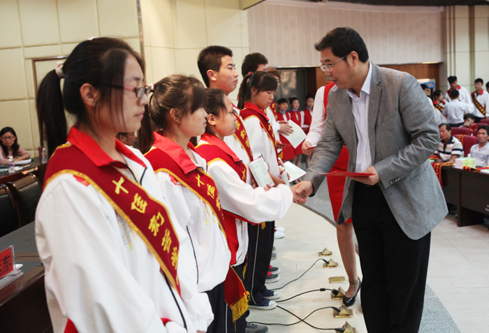 王晖作了总结讲话,他希望受到表彰同学珍惜荣誉,继续努力;号召全体同学向身边榜样学习,努力成就自我;希望全体同学树立崇高理想信念,在实现中国梦的伟大征程中奋勇承担,做社会主义事业合格建设者和可靠接班人。