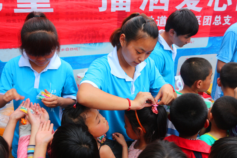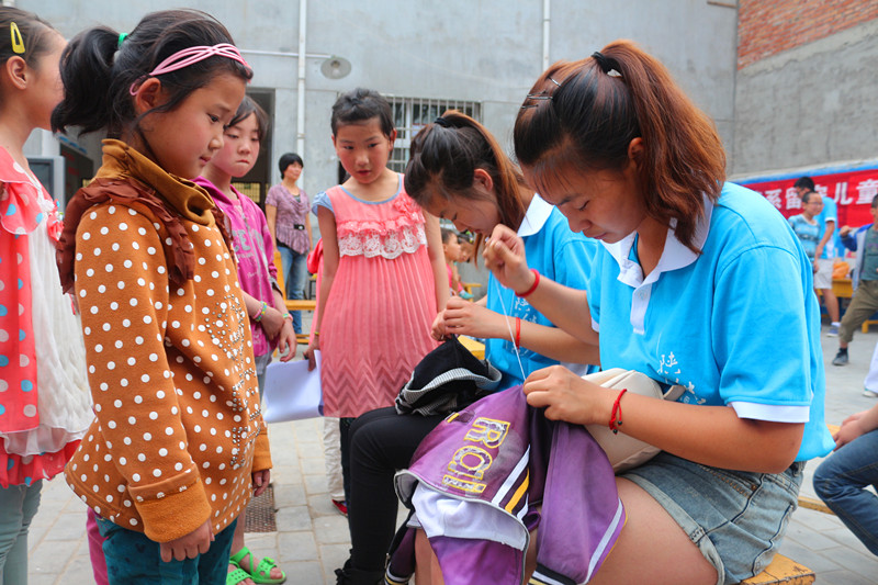 在留守儿童之家,志愿者们给孩子们理发、缝补衣服,为孩子们扎上了漂亮的发卡,教孩子们画画,为孩子们送去了拖鞋、牙刷、圆珠笔等生活用品和学习用品,为孩子们表演了跆拳道、魔术等节目,与孩子们一起提前庆祝了一个难忘愉快的儿童节。