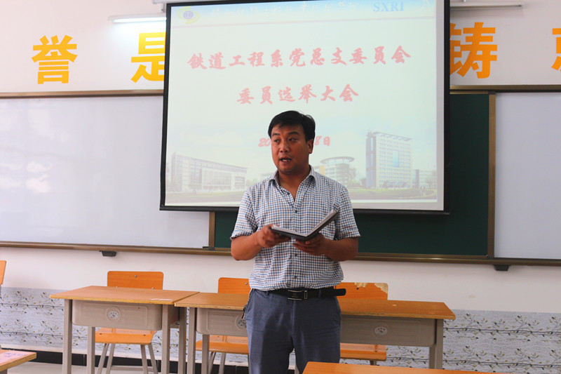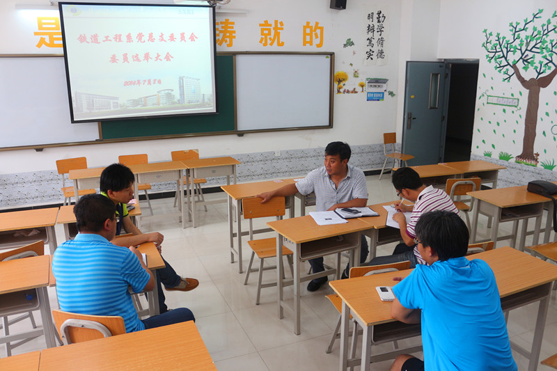 7月8日下午,铁道工程系在GB246教室召开铁工系党总支委员会委员选举大会,铁道工程系全体教职工党员参加会议,会议由铁道工程系党总支书记李军志主持。会上,李军志书记宣读了换届选举办法,并向与会人员介绍了新一届委员会委员候选人的推选过程和基本情况,与会党员一致通过了选举办法及监票人、计票人名单。经过大会民主投票结果统计,最终张碧、李军志、朱永伟、郎儒林、刘杰当选为新一届铁工系党总支委员会委员。